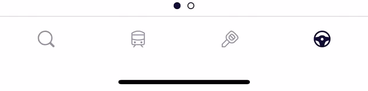 Click on the search button (magnifying glass) to be a passenger and the bus icon to access information about public transportation. The key icon sends you to Lyft’s car rental partner, and the steering wheel directs you to the Lyft app for driving.