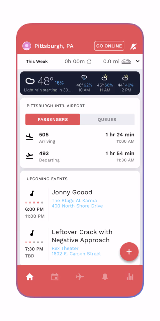 Las Funciones de Gridwise Donde Conducir y Cuando Conducir te proporcionan datos en tiempo real sobre dónde los conductores están facturando más en tu vecindario. Estudiando los patrones encontrados en estas funciones te permitirá saber cuándo hay mayor tráfico de pasajeros y entregas y dónde encontrar la mayor cantidad de negocios. Con Gridwise, consigues todo esto y unrastreador de millas gratis, también!