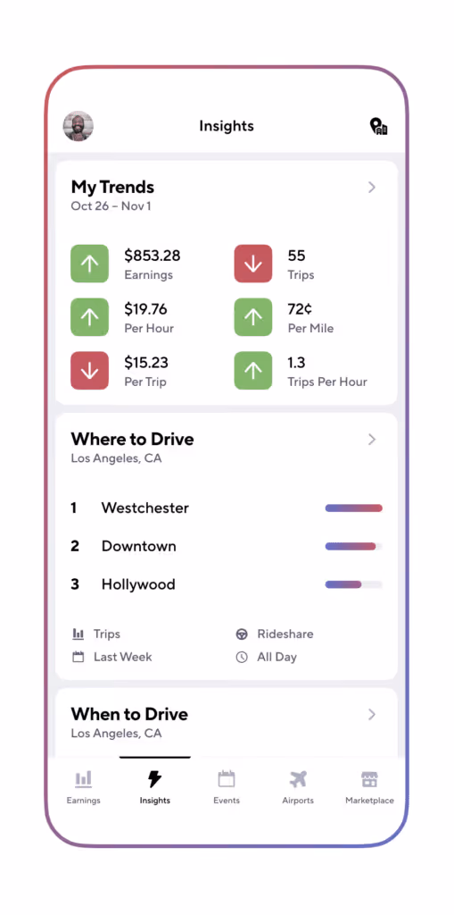 These data-driven insights take the guesswork out of driving, helping you plan smarter routes, reduce downtime, and increase your overall earnings efficiency.