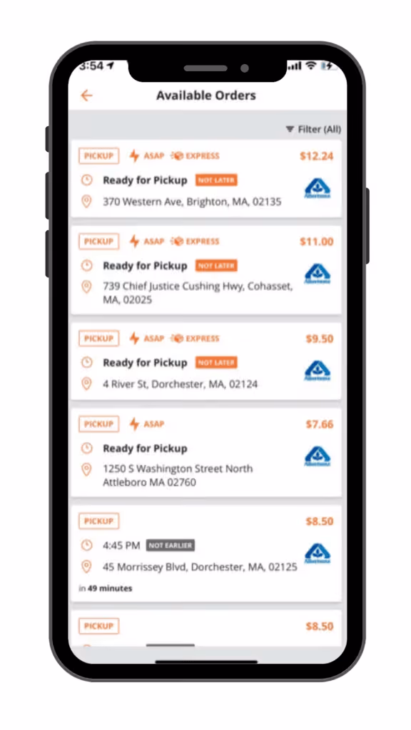 La flexibilidad es la característica estrella que hace que Point Pickup sea muy diferente de los viajes compartidos y el resto de aplicaciones de entregas. Tú eliges las entregas que deseas realizar. No hay necesidad de conducir por ahí esperando recibir una notificación. Tampoco tienes que establecer un bloque de horarios. Simplemente consultas la aplicación para ver qué entregas están disponibles, y seleccionas los trabajos con anticipación. Puedes entregar un pedido o varios, dependiendo de tu horario y la demanda de tus servicios de entrega.