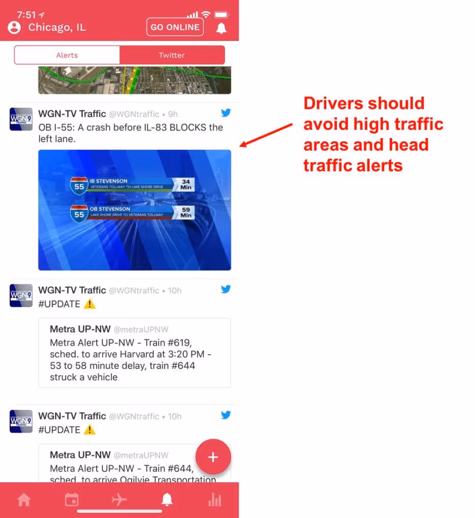 By using Gridwise traffic alerts in conjunction with the events feed, drivers can better understand where they could be driving that will help them avoid traffic instead of run right into it.